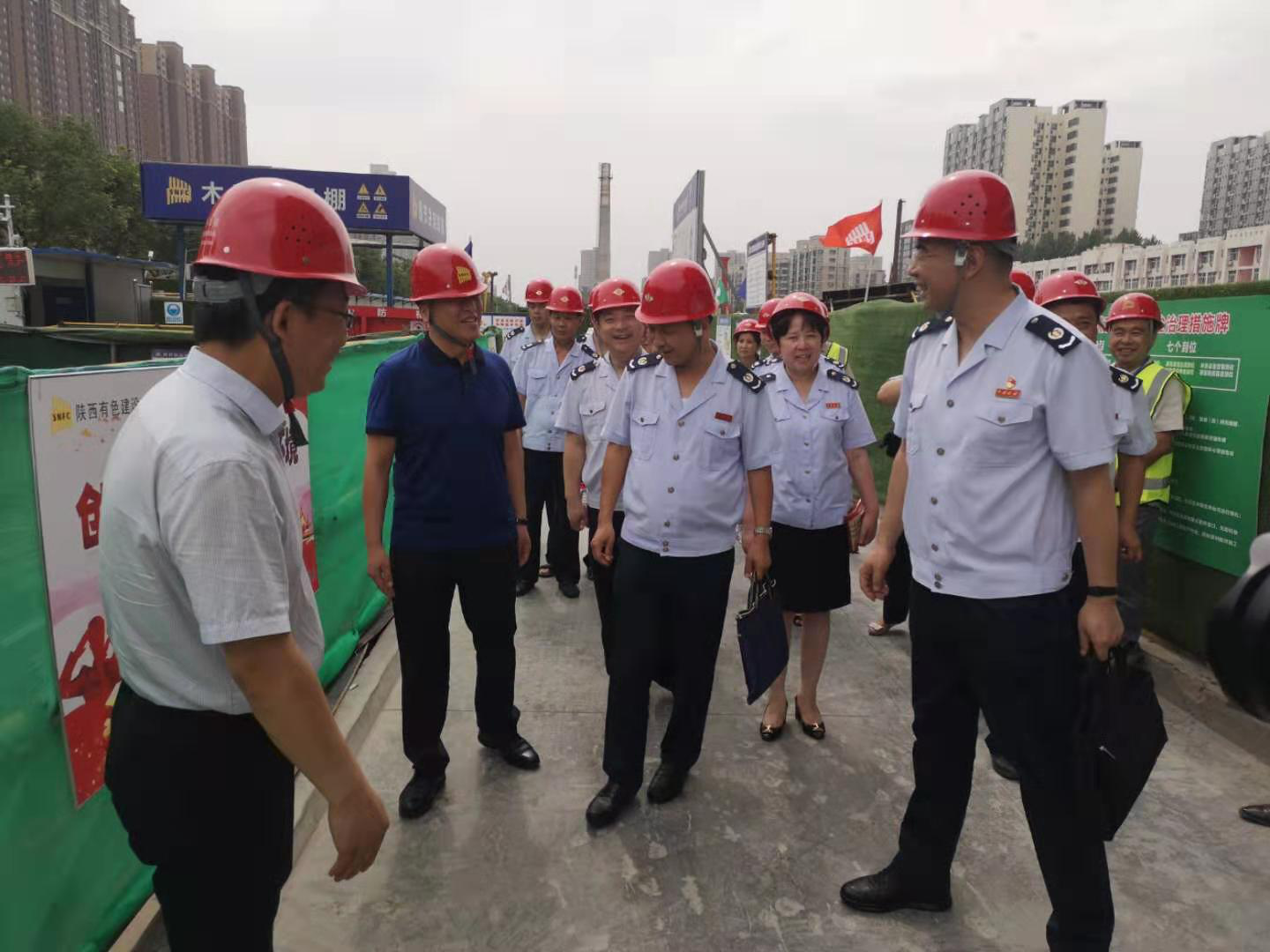 近日,西安市稅務局第二稽查局和我公司在西安鵬潤悅秀城二期2.1標段項目部聯合舉行以“稅企聯動、掃黑除惡”為主題的宣傳活動,西安市稅務局第二稽查局副局長宋曉軍、公司總經理楊明鈺、總會計師陳毓等兩家單位有關領導及項目施工管理人員參加了本次活動。